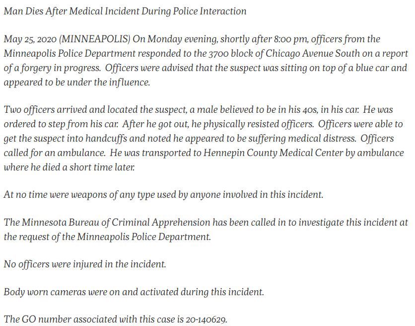 A recent example of why people don’t trust government goes back to George Floyd and the press release written about his homicide. Reading nothing more than the press release put out by the Minneapolis police department (government) and not knowing anything else about this case, one would likely conclude that Mr. Floyd had died of “medical distress” and one would have concluded that Floyd died at the Hennepin County Medical Center, not on the streets of Minneapolis; and one would’ve been wrong. It took taking Floyd’s murderer his day in court to find out that George Floyd died with a cop’s knee to his neck and had died before an ambulance showed up, not at a medical center.