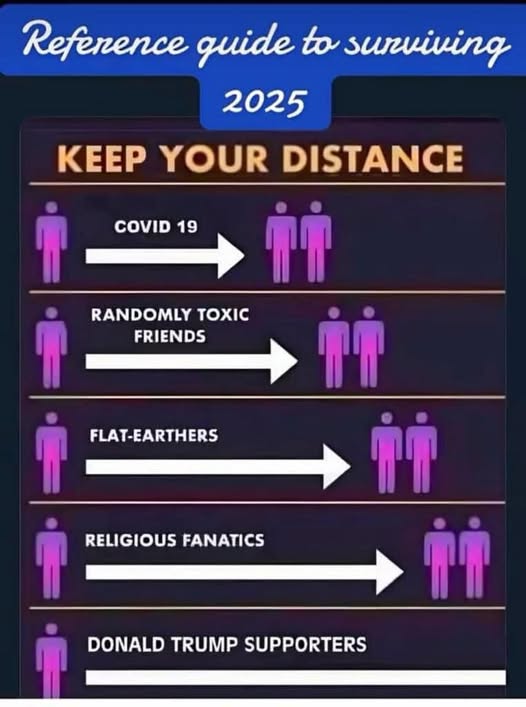 Create healthy boundaries against toxic MAGAs, who I have found for the most part are not safe people. If you meet a MAGA, keep them at arms length until you are certain they are not one of the radical right-wing faction. (They all are not extremists, you know. Some are simply not educated in how politics affects average Americans.)